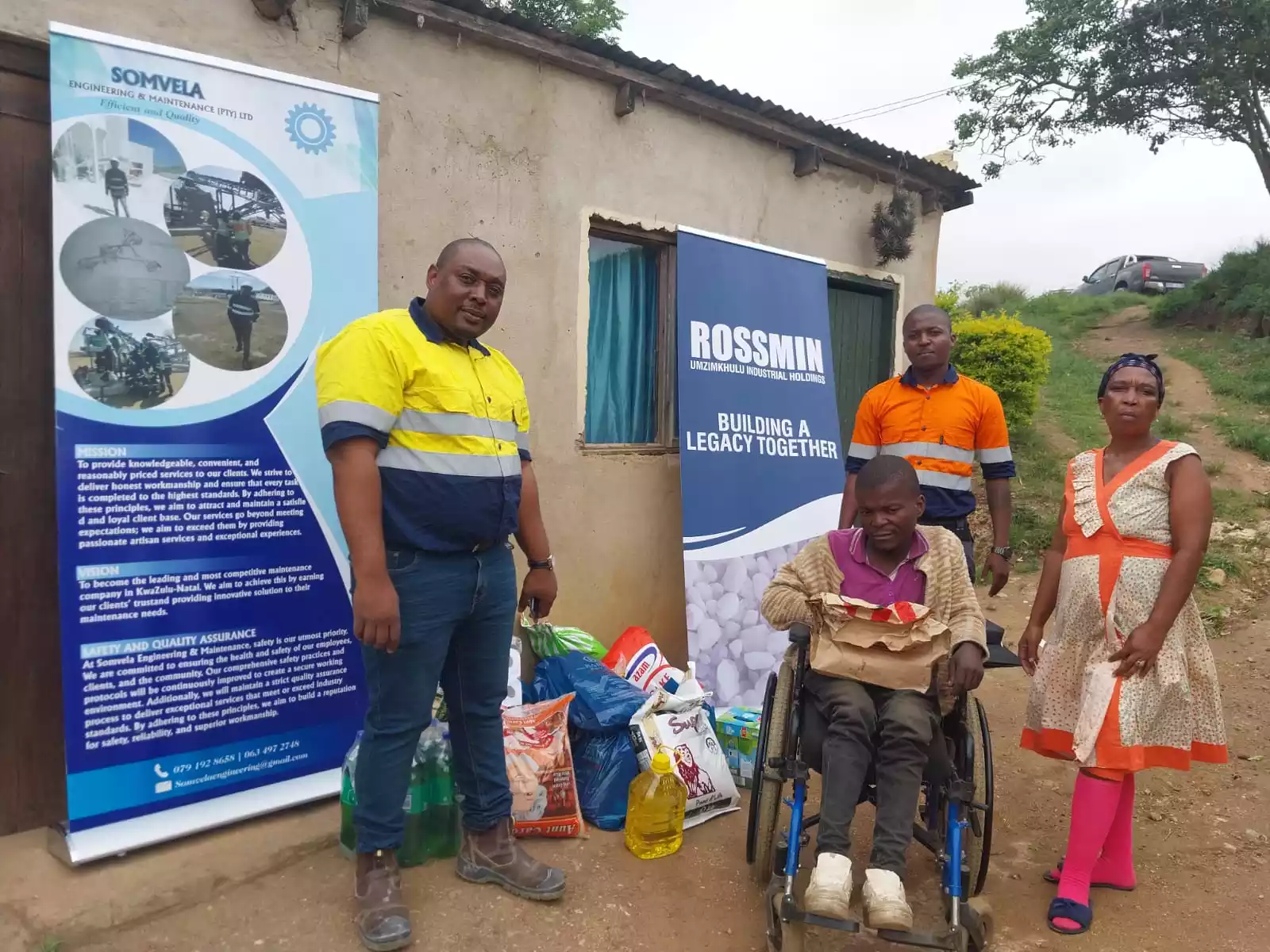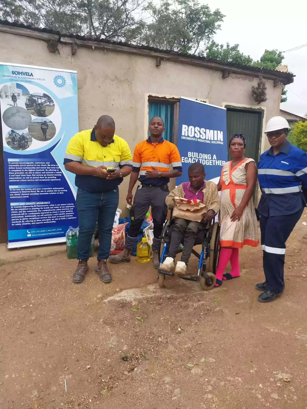 At Rossmin, we are proud to work closely with contractors, many of whom are from the surrounding communities. One such example of this collaboration is our partnership with Somvela Engineering company, a contractor from Kwamadlala. Recently, the team noticed a disabled man from the Oshabeni community and decided to act.
