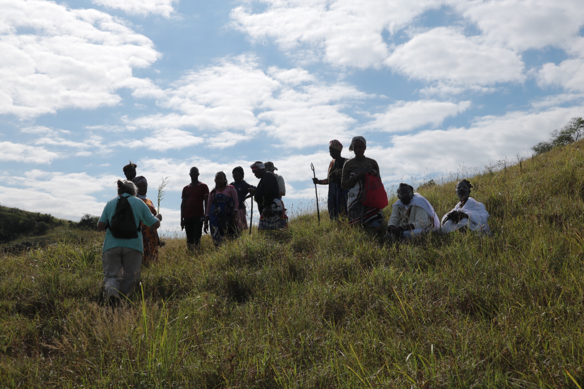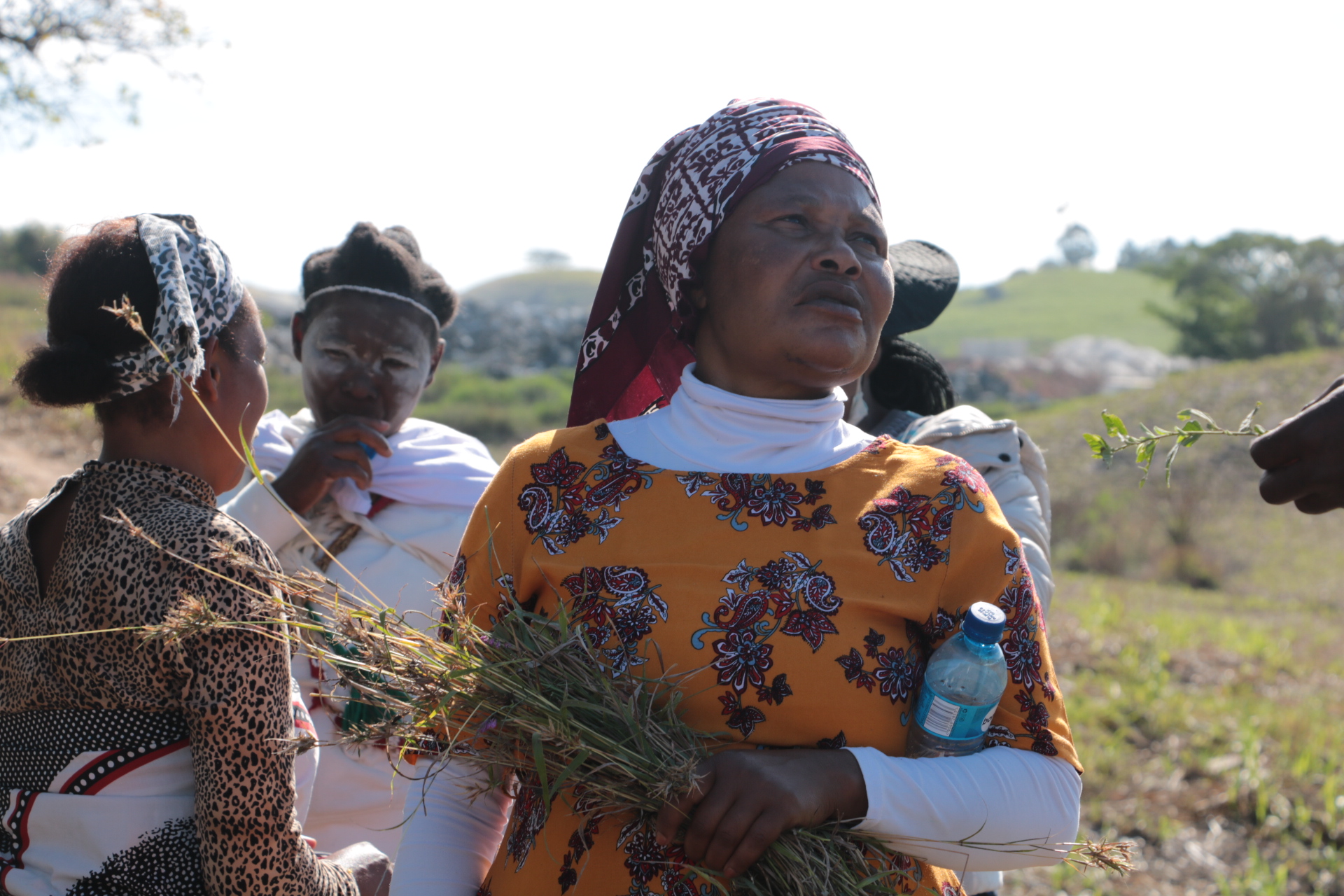Sarah addressing the inyangas and expressing the importance of being the custodian's of the conservation area that is set aside in this mining area. For conservation to be successful, conservation teams need to comprise different types of specialists, including indigenous groups that have over the years managed and ensured the sustainability of natural plant resources.