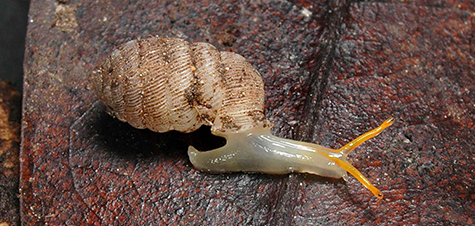 Dr. Dai Herbert, of the KwaZulu-Natal Museum in Pietermaritzburg, collected more than 40 different species of snails in 2001 and 2002 on Ndongini, some of which were quite rare and unusual. Of particular interest was the discovery and description of a species new to science. This species has been described as Gulella Salpinx, the Trumpet-Mouthed Hunter snail. It is a small snail, only 7.5 mm long, but, unlike many other snails that feed on plant material, it is a carnivore, feeding on soft-bodied creatures that live in the surface soil and leaf litter of well-wooded habitats. It is also unusual in that it does not lay its eggs, but retains them within the parent until they hatch as miniature crawling youngsters.